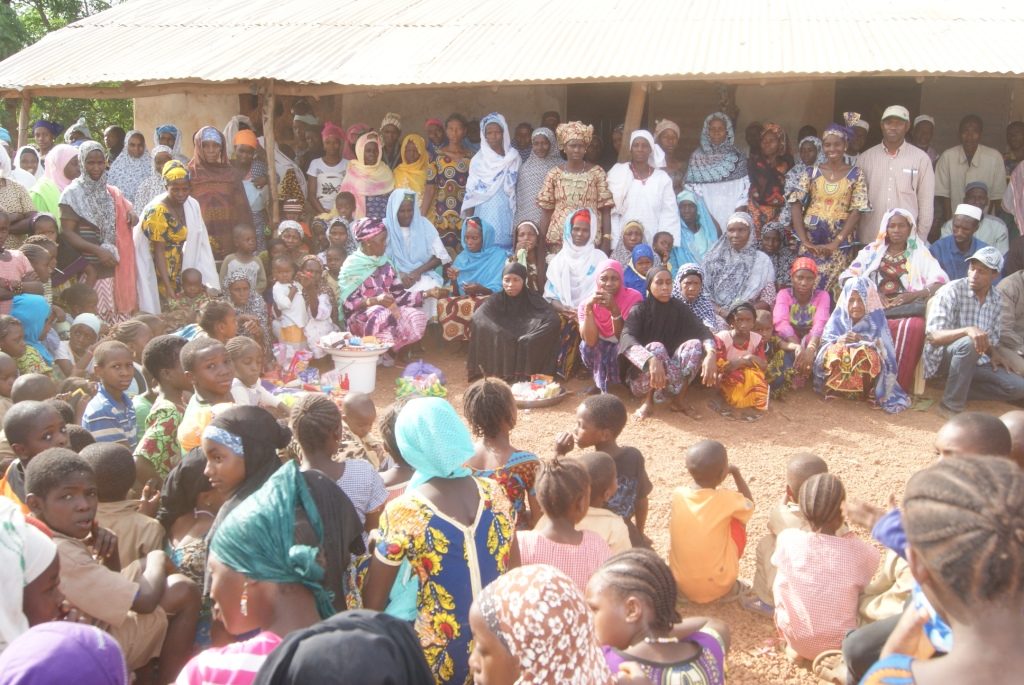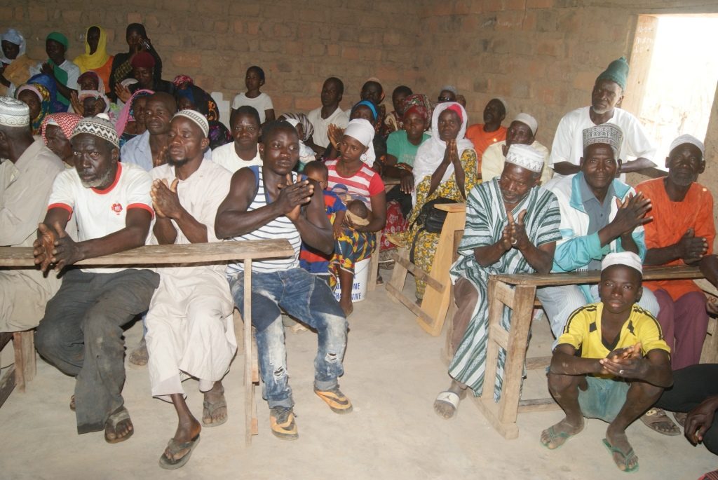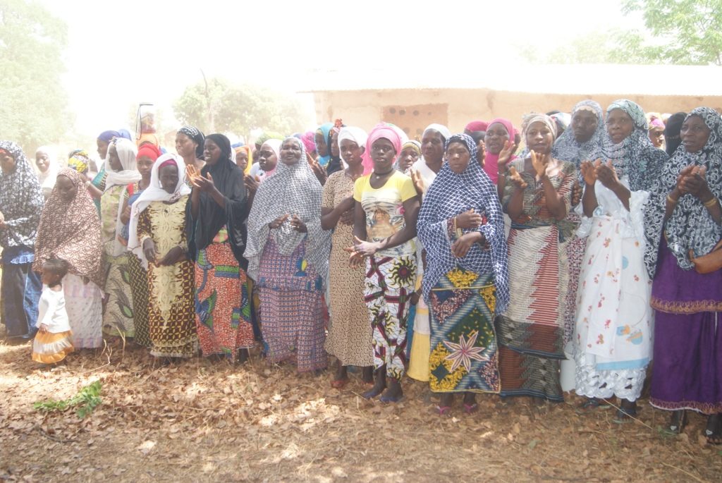 Des Femmes de Benguérin arreteés en chantants et applaudissant pour la mission devant les sales de classe