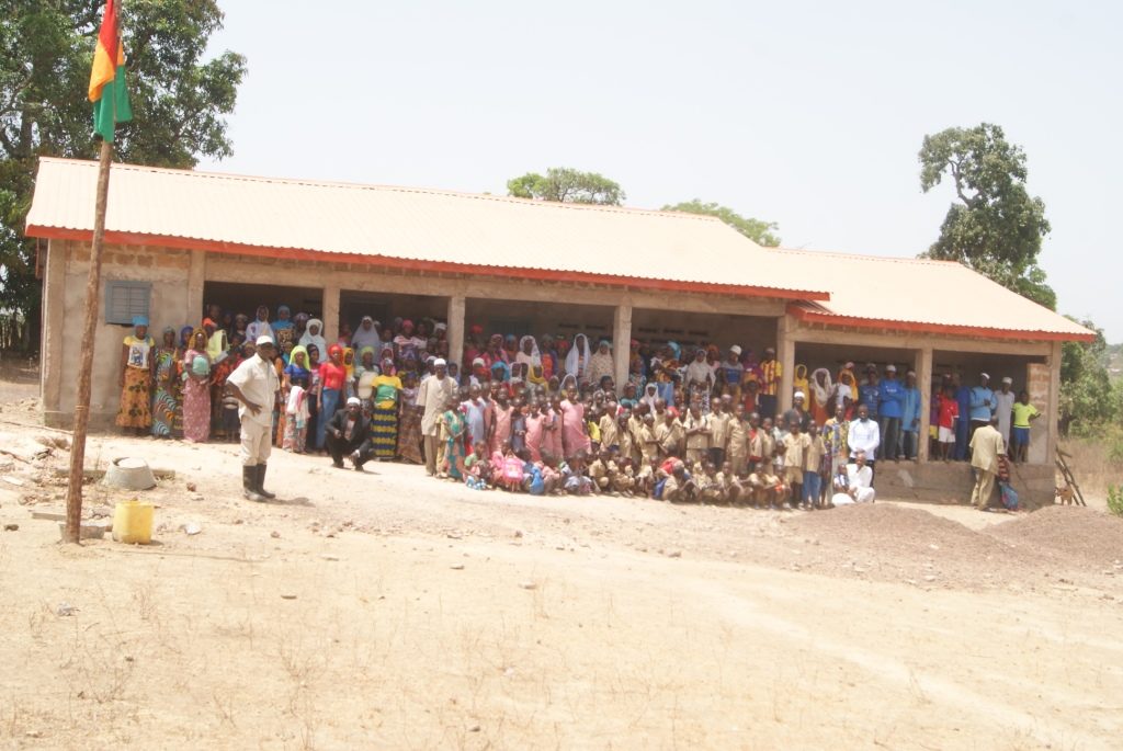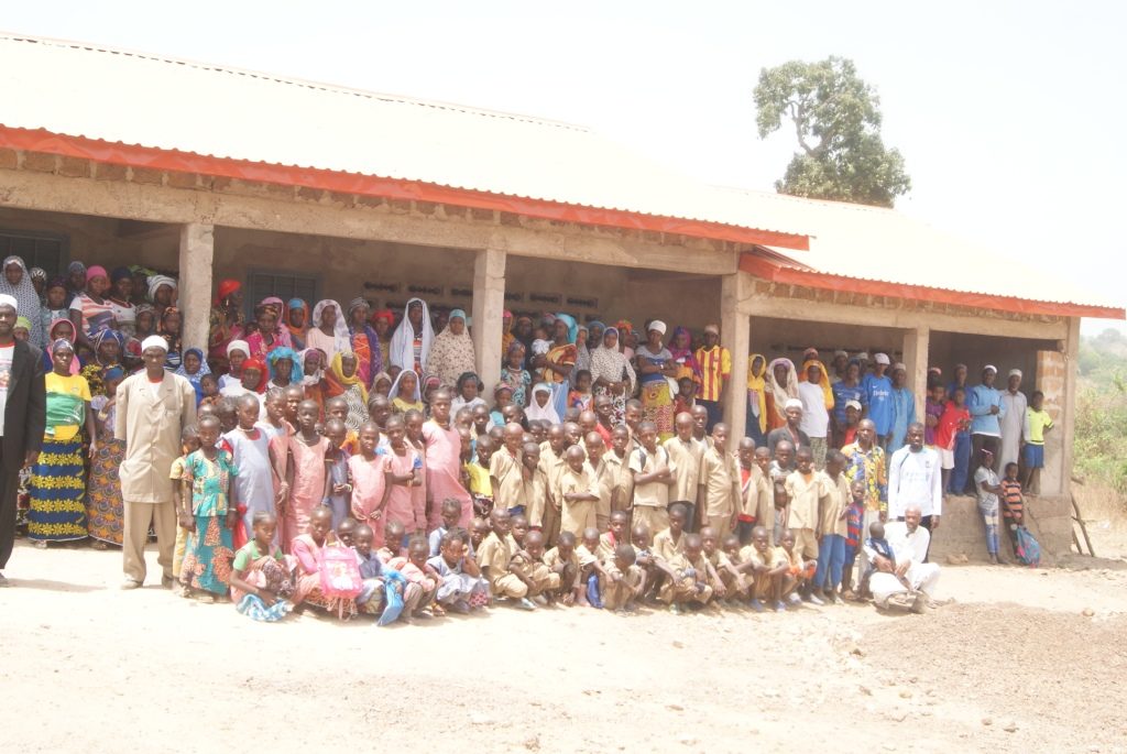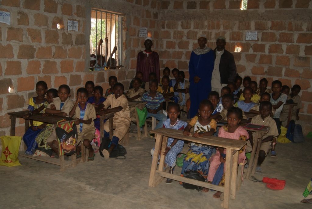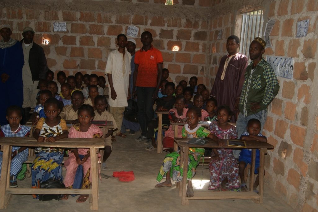 Les membres de LAPEAE et les éleves dans la salle de classe de Tondon