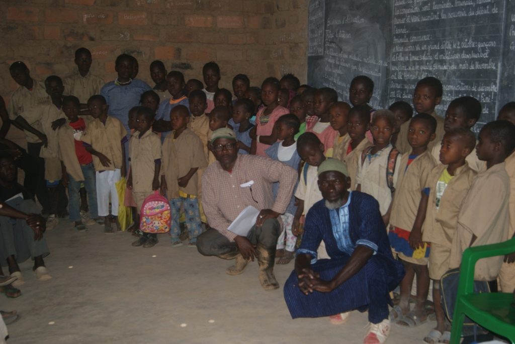 Sidibé Yacine et le Chef du Secteur et des ressortissants de Guéssoré au tour du mat de l'école primaire